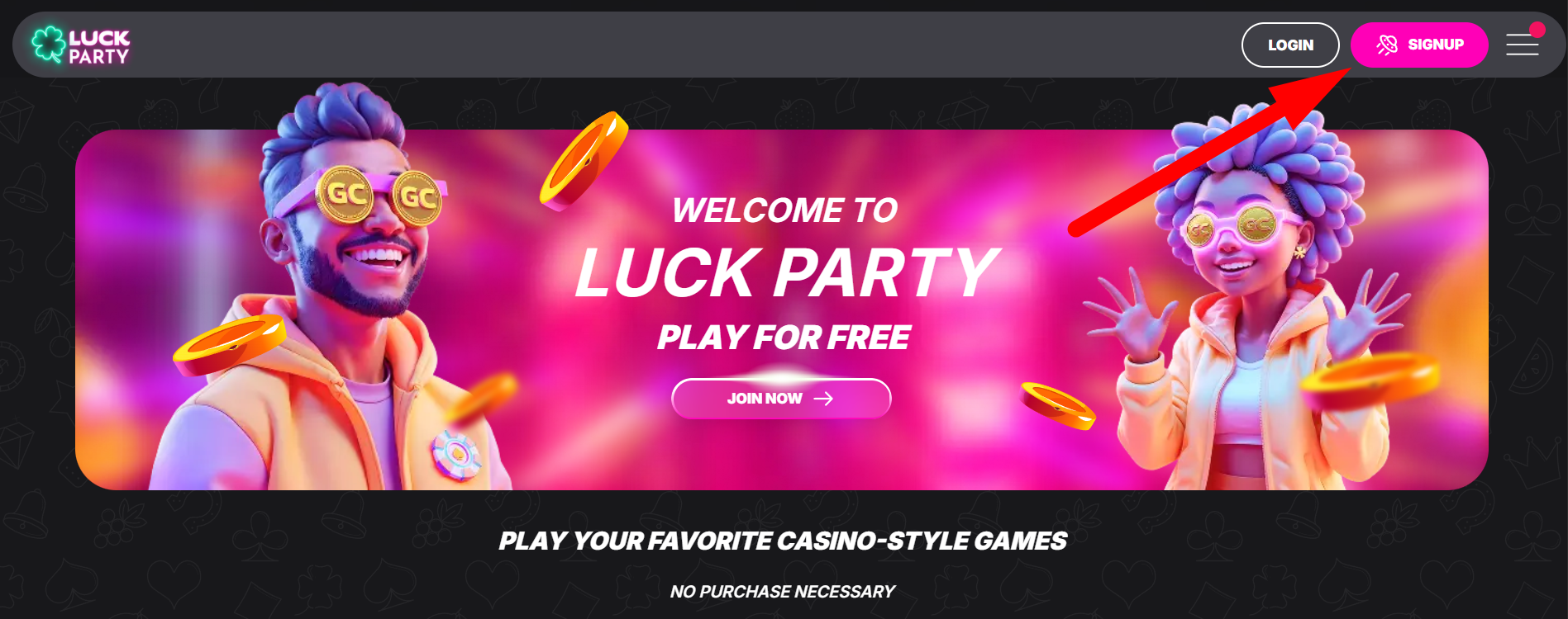 Visit Luck Party – Go to our website and click the “Sign Up” button, located in the top-right corner.