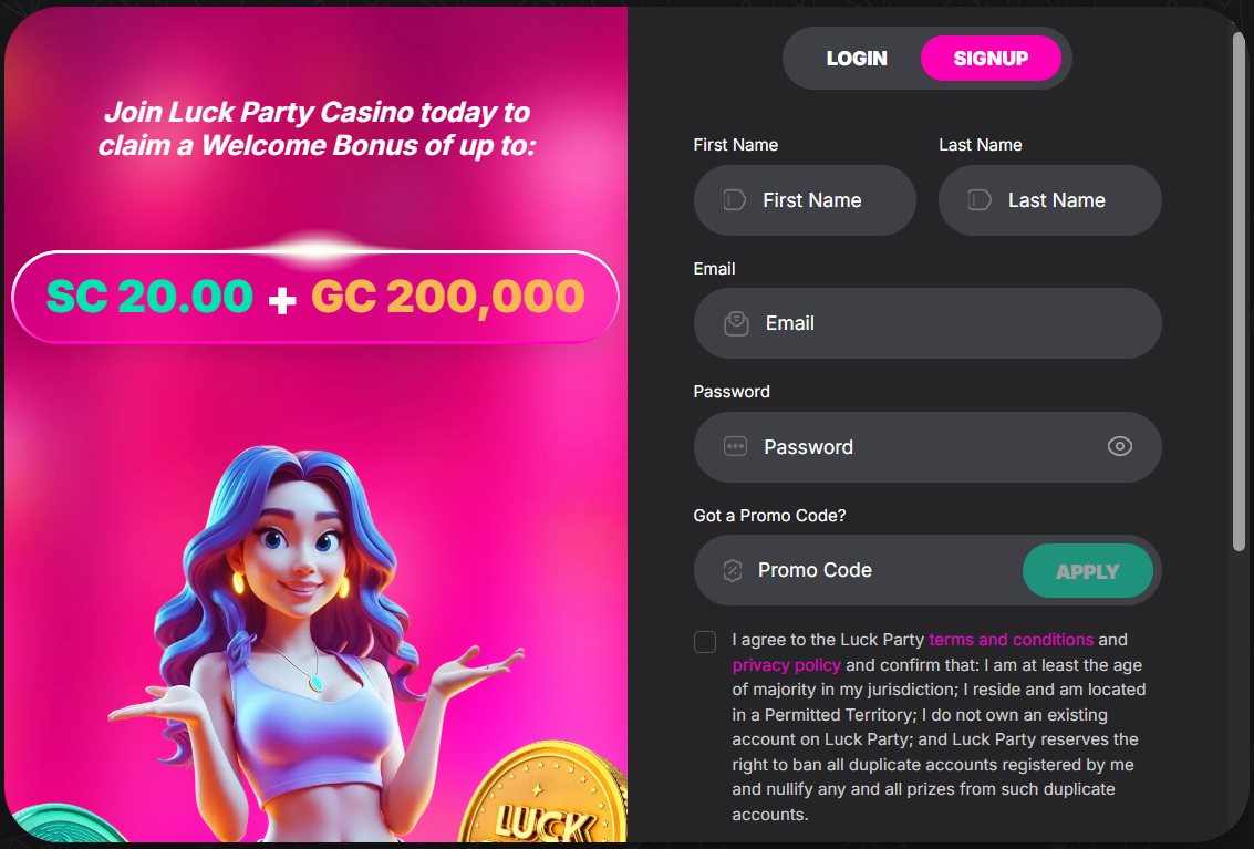 Creating your Luck Party account is quick and easy! Just follow these simple steps to get started: